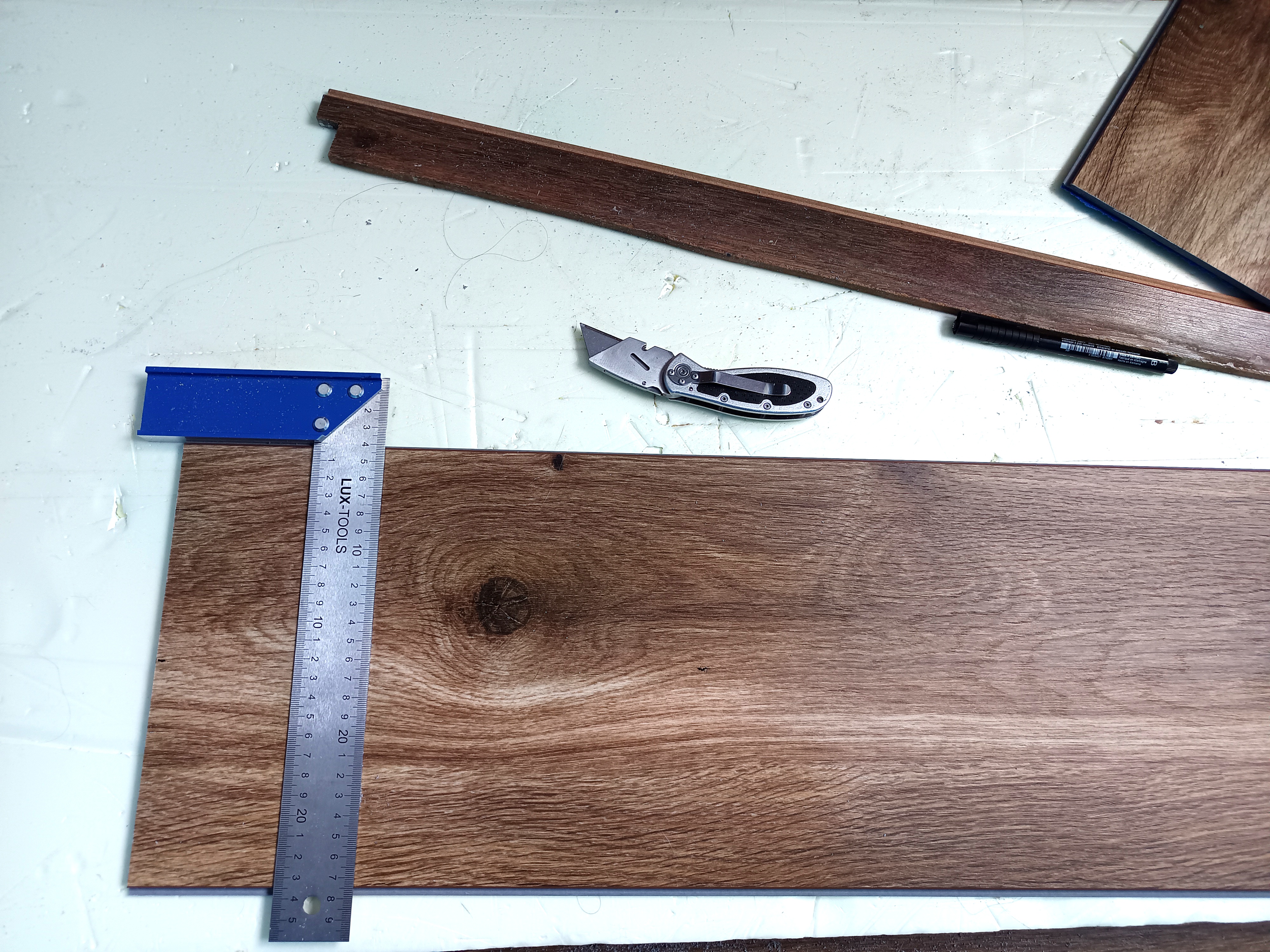 pajonk: Cięcie, a właściwie łamanie paneli wzdłuż jest trudniejsze, ale wykonalne. Skończyłam, a listwy zabejcowałam przedwczoraj, więc teraz już tylko muszę je przykleić i fajrant. |