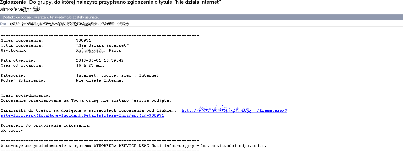 "Zgłoszenie nr 20130526100006xx] Dziękujemy za przesłanie wiadomości. Prosimy oczekiwać na kontakt Sklepu OleOle i nie odpowiadać na tą wiadomość."#otrs w akcji