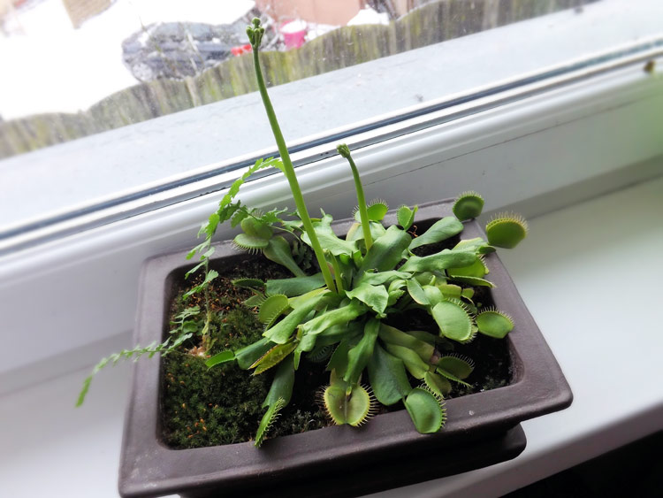Po czym rozpoznać że jest zima? Po śniegu? Nie. Zimę rozpoznajemy po tym, że Halina zaczyna wypuszczać liście bez pułapek i szykuje się do kwitnienia :-)