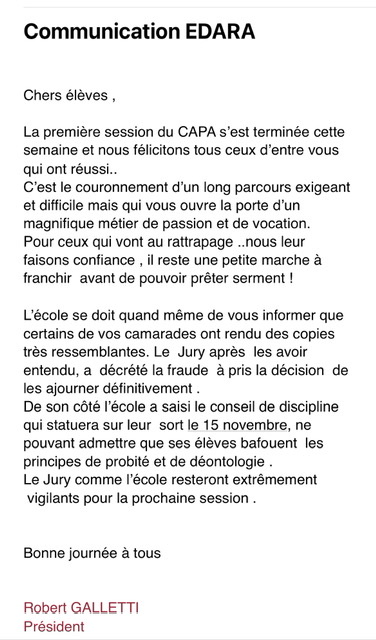 [^soupe] ciekawe, co postanowi conseil de discipline. Bo generalnie za sciaganie na egzaminach jest 5 lat zakazu podchodzenia do egzaminow.