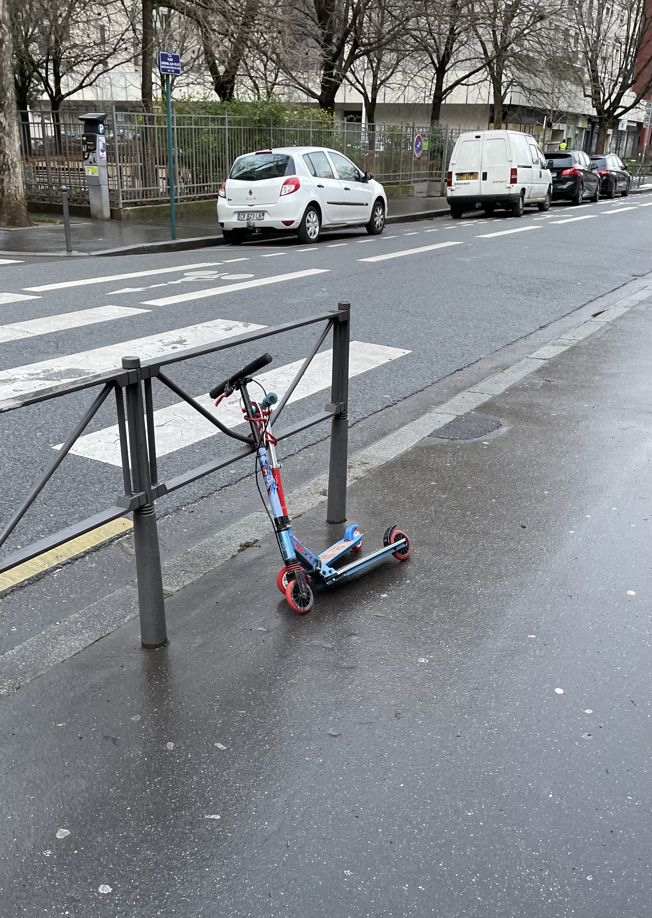soupe: Takie rzeczy tylko w Lyonie. Już któryś raz widzę te dwie hulajnogi tak przypięte bardziej na słowo honoru. I ciągle stoją. |