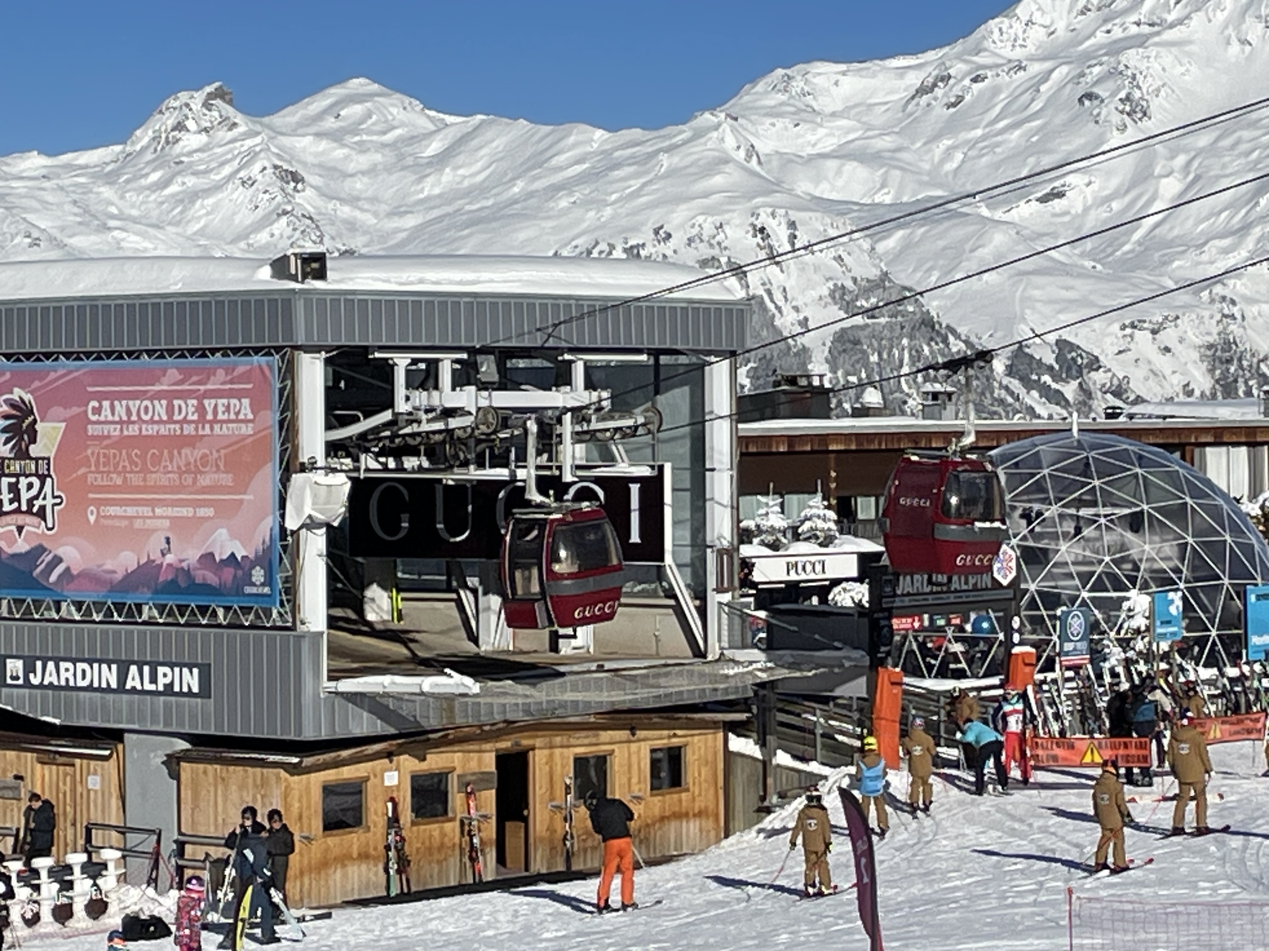 soupe: Oraz - takie rzeczy tylko w Courchevel. Tak, na zdjęciu widzicie kolejkę linową w kolorach Gucci. |