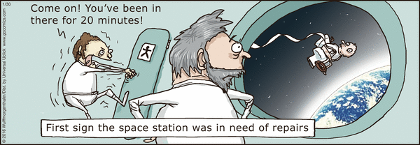 Krótki komiks o tym, jak sprzedający puścił kredens i podążył w kierunku zachodzącego peronu.