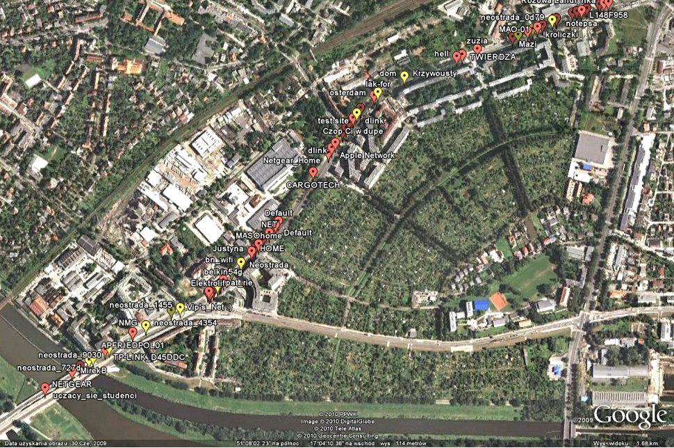 tomekz: Jak również przejechałem autobusem 10 km przez miasto robiąc przy okazji telefonem wardriving. Efekt: 1006 sieci bezprzewodowych, w tym 102 otwarte. Najs. |