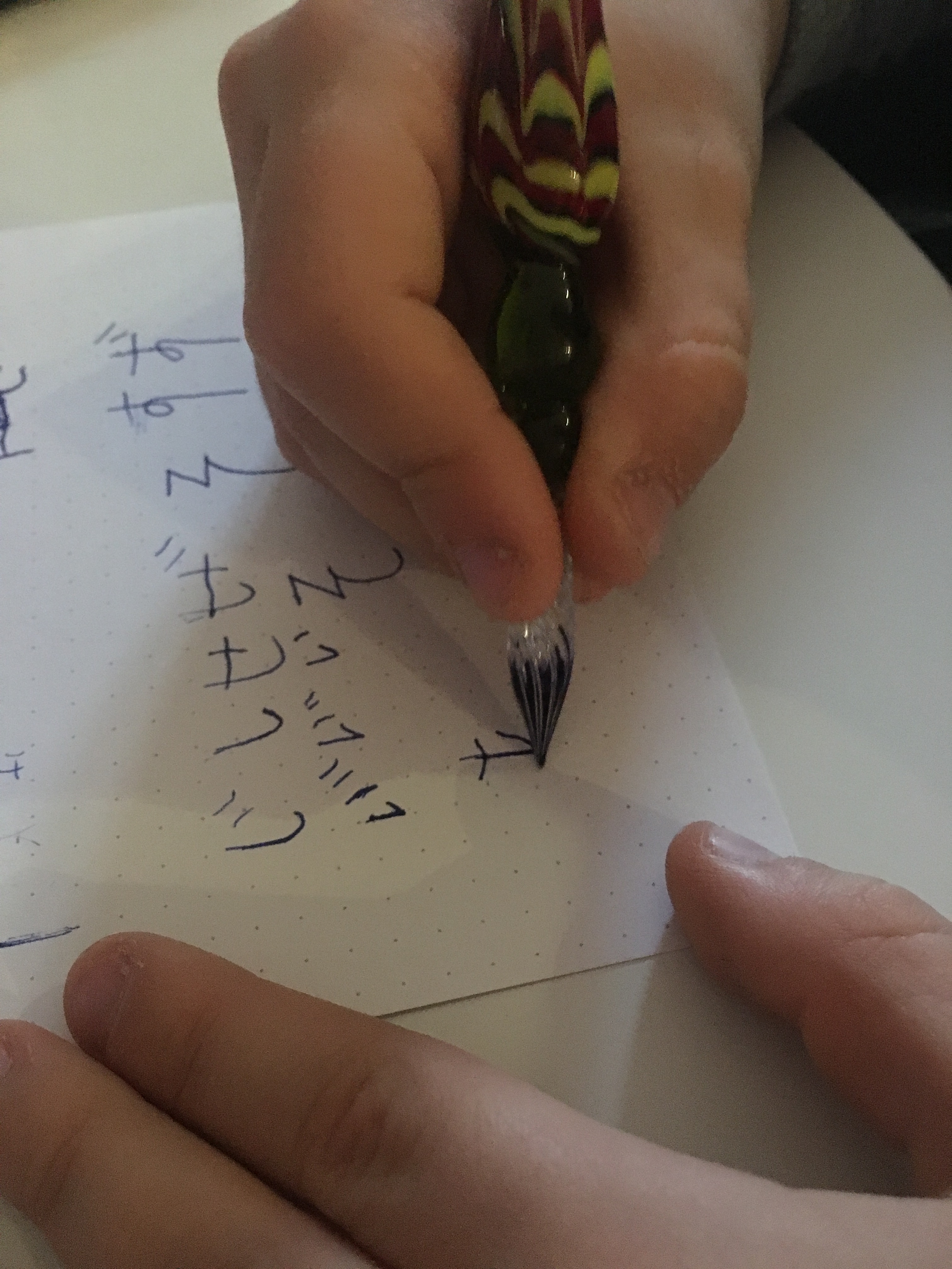 Franek ćwiczy japoński. Tylko czemu moim szklanym piórem to ja nie wiem.