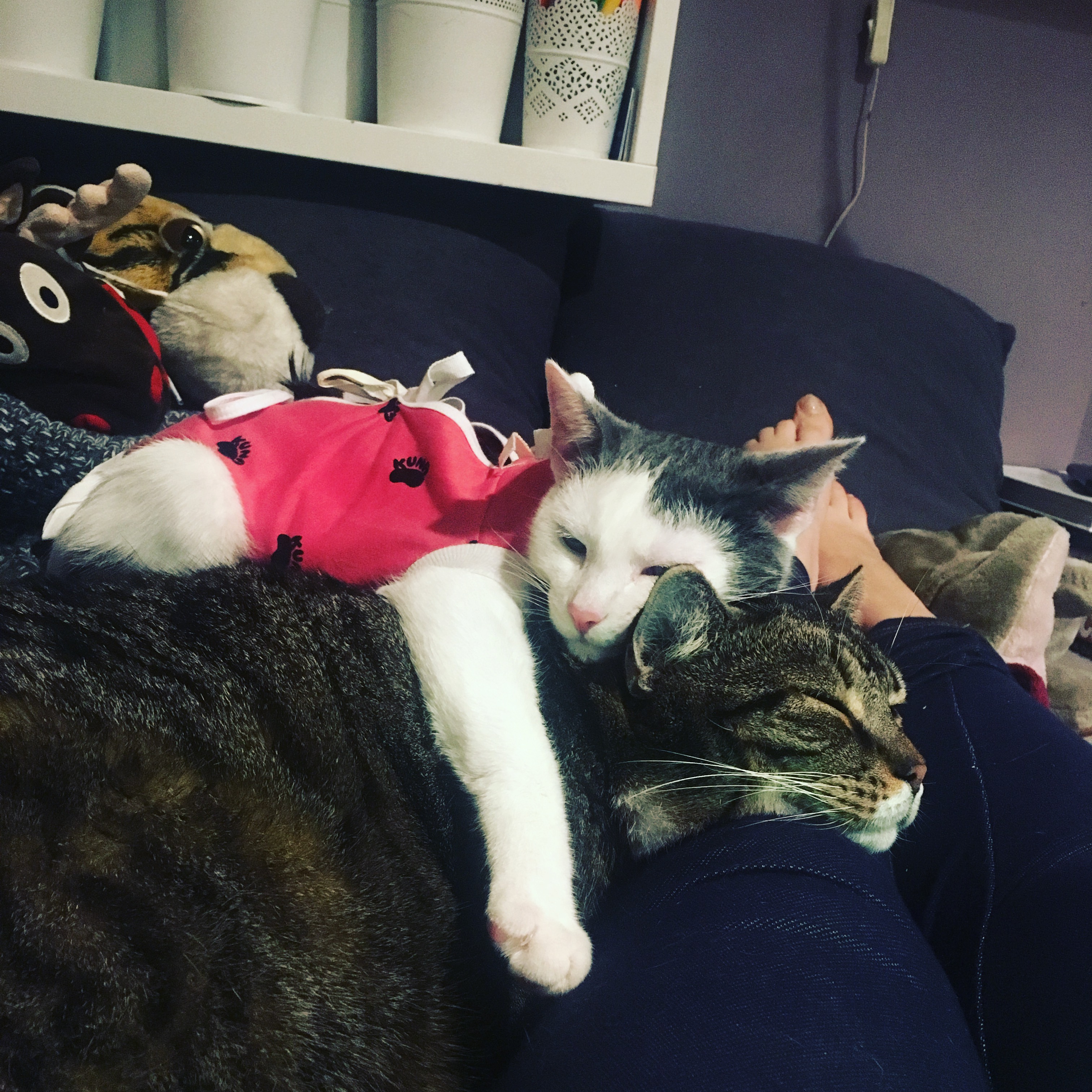 tunia: Odebrałam dwie pijane kupki nieszczęścia kociego. Przecinek nie zdemolowała przychodni. Zarzygala za to. |