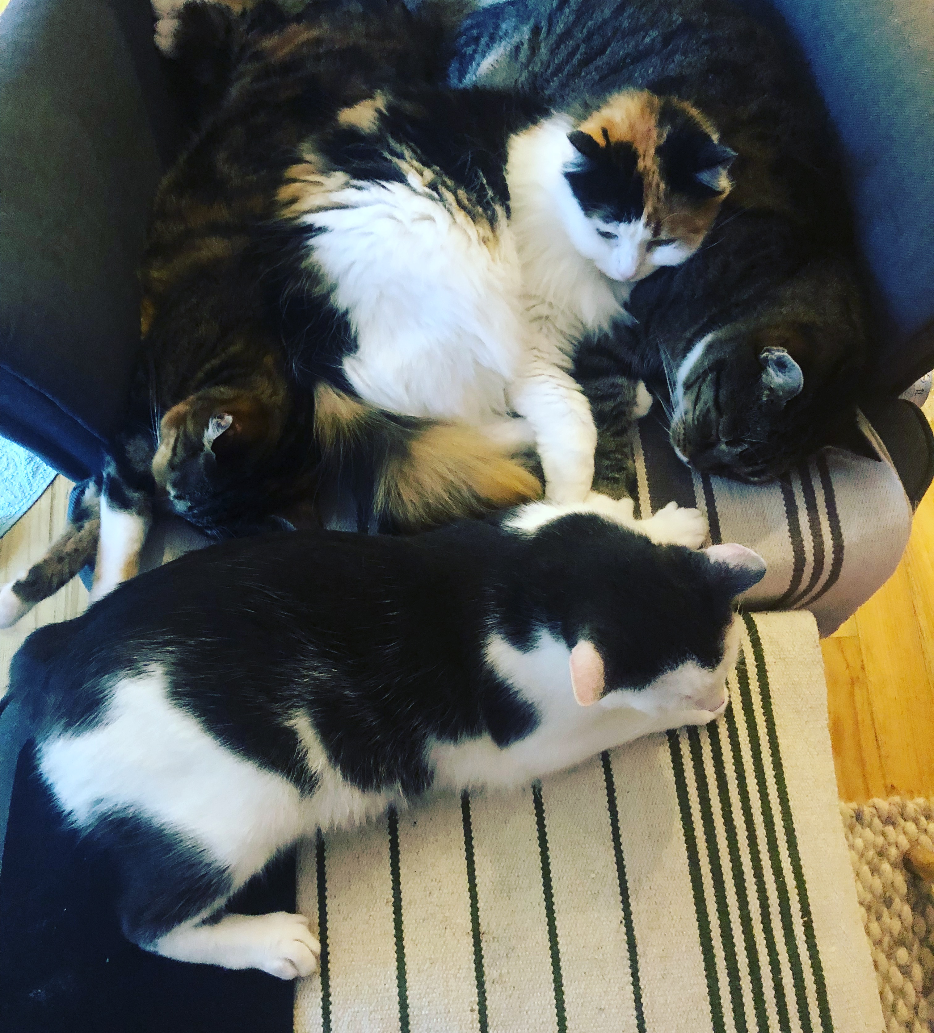 tunia: Emo zaległ. Przyszła Pixel. Dostała buzi. Przyszła natychmiast Puca bo Emo jest jej. Kropka tez by. Ale mam za mały fotel. |