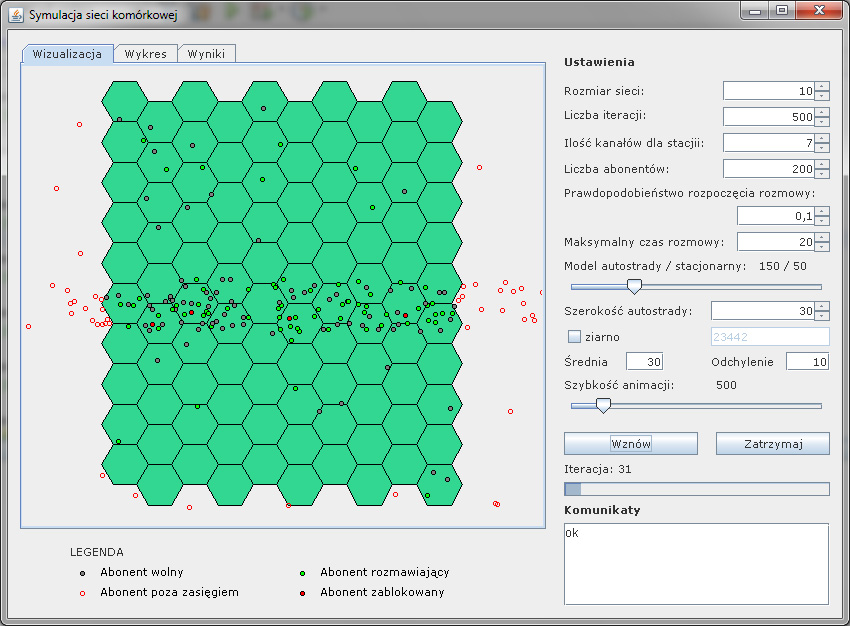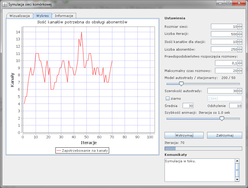 varabi: Symulator sieci komórkowej ma już generowany w czasie rzeczywistym wykres zajętości kanałów. Jeszcze tylko kilka poprawek i koniec. |