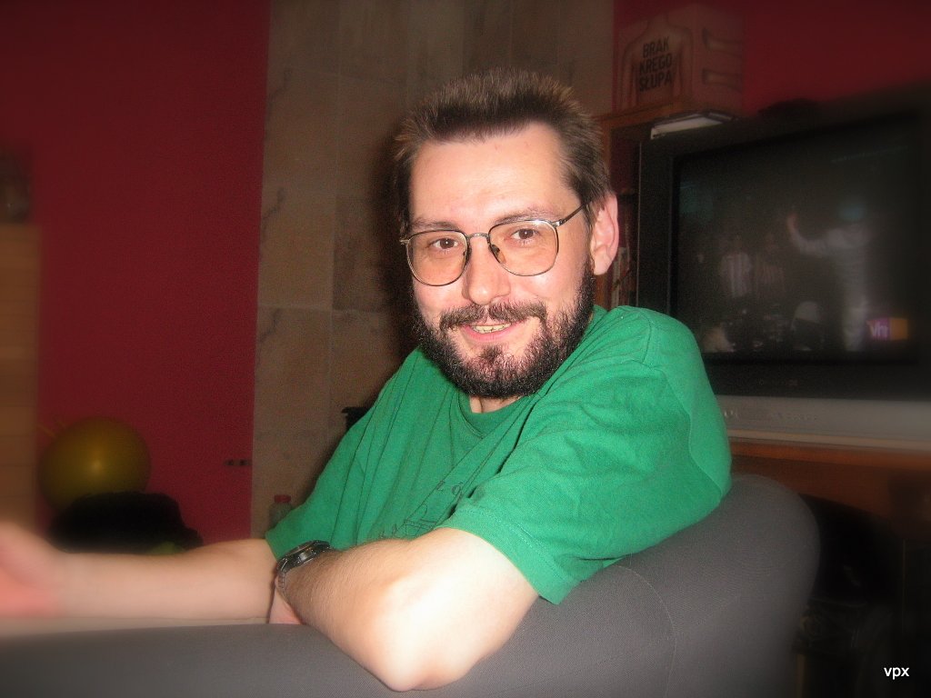 vauban: [^vauban] to jest, zdaje się sylwester 2006/2007 u znajomych na starym mieszkaniu, gdzie mieli kominek który rozżarzał się wiśniowo. Na t-shircie jest żółw jako logo programu ochrony żółwia błotnego w Polsce, btdt. |