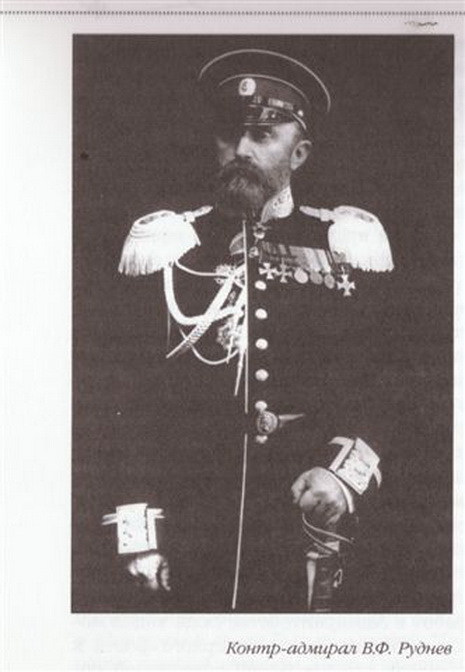 wariag: Wsiewołod Rudniew jako kontradmirał. Dowódca Wariaga w 1904 jako kapitan I rangi. Aby uchronić cywili przed ostrzałem wyszedł daleko w morze mimo awarii.. |