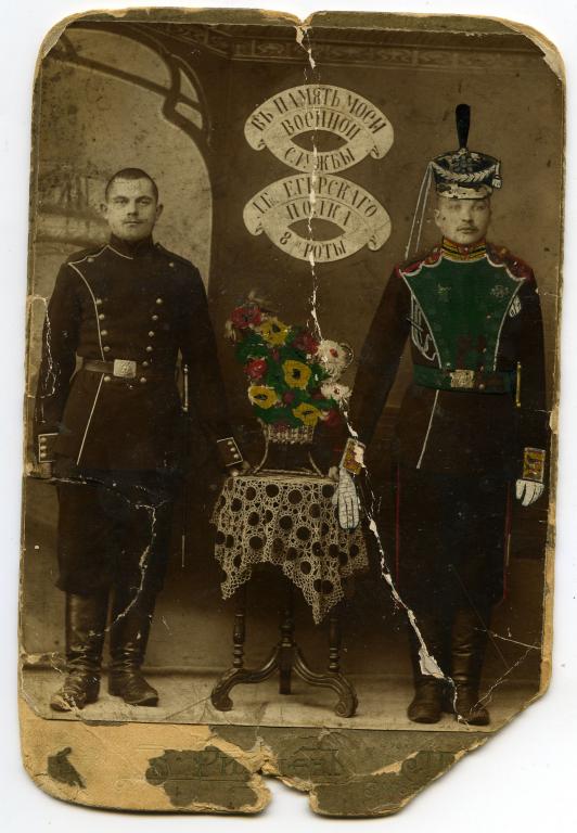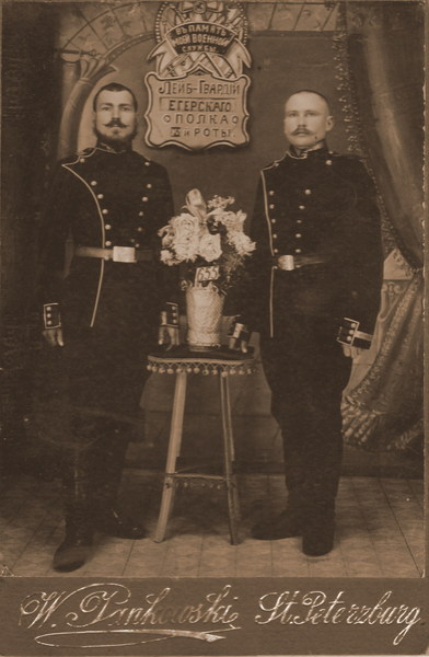 wariag: Iwan Jemielianow z Bogorodska-sałdat Lejbgwardii Wołyńskiego Pułku. W 1905 pulk ochraniał W-wę w czasie"bezporiadkow".. |