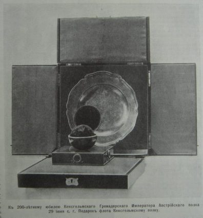 wariag: Warszawa 1910. Ta kula to dar floty dla keksholmskiego pp z okazji 200-lecia pułku. Wydobyta z burty zatopionego okrętu "Św. Jewstafij" (keksholmcy jako desant) |