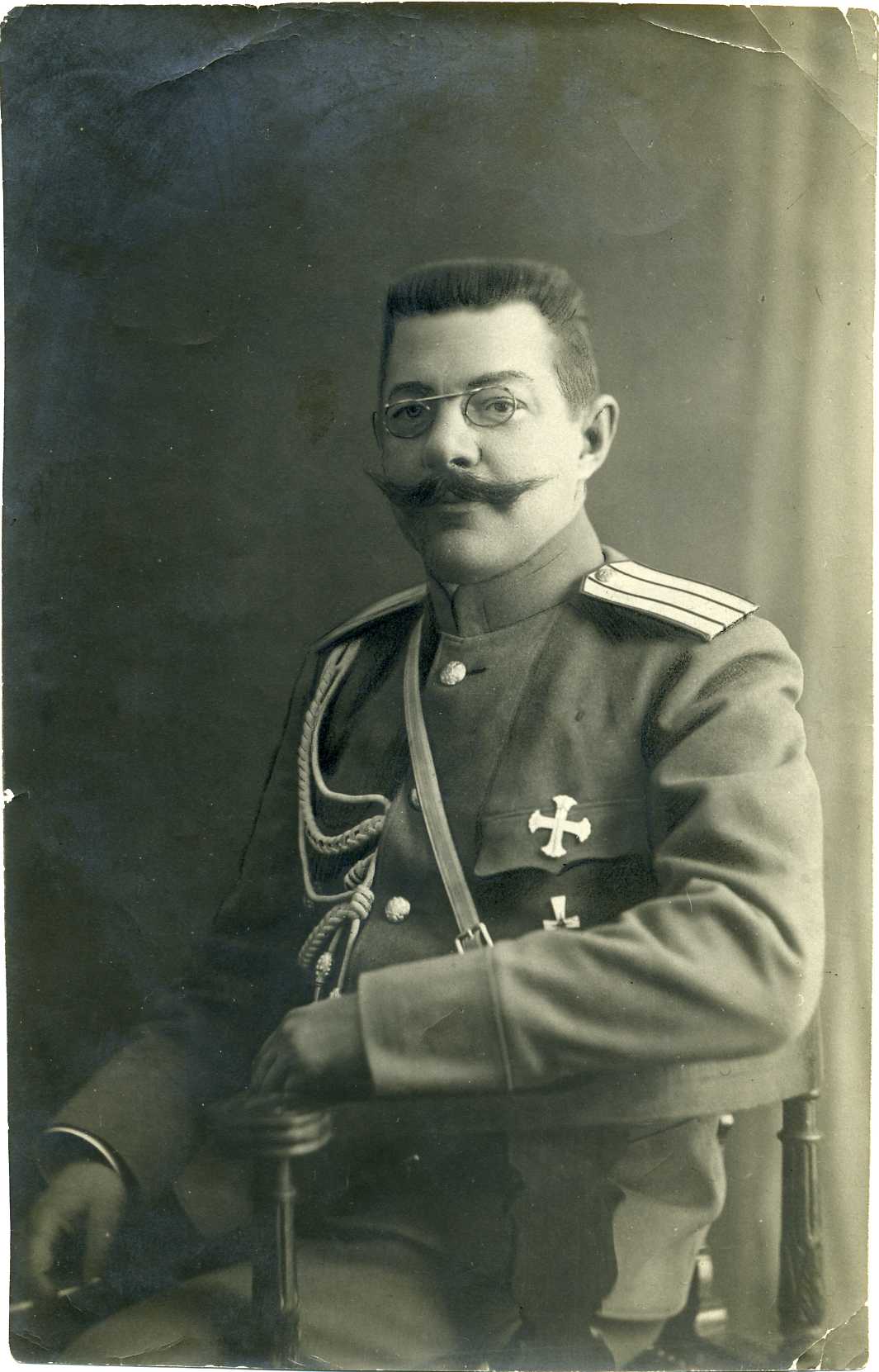 wariag: Częstochowa (może Piotrków). Podpułkownik Mark Mazurenko z 8 pułku strzeleckiego.Odznaczony za bitwę pod Krasnem (maj 1915) "giergiejewskim oriużiem" |