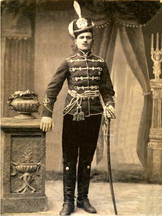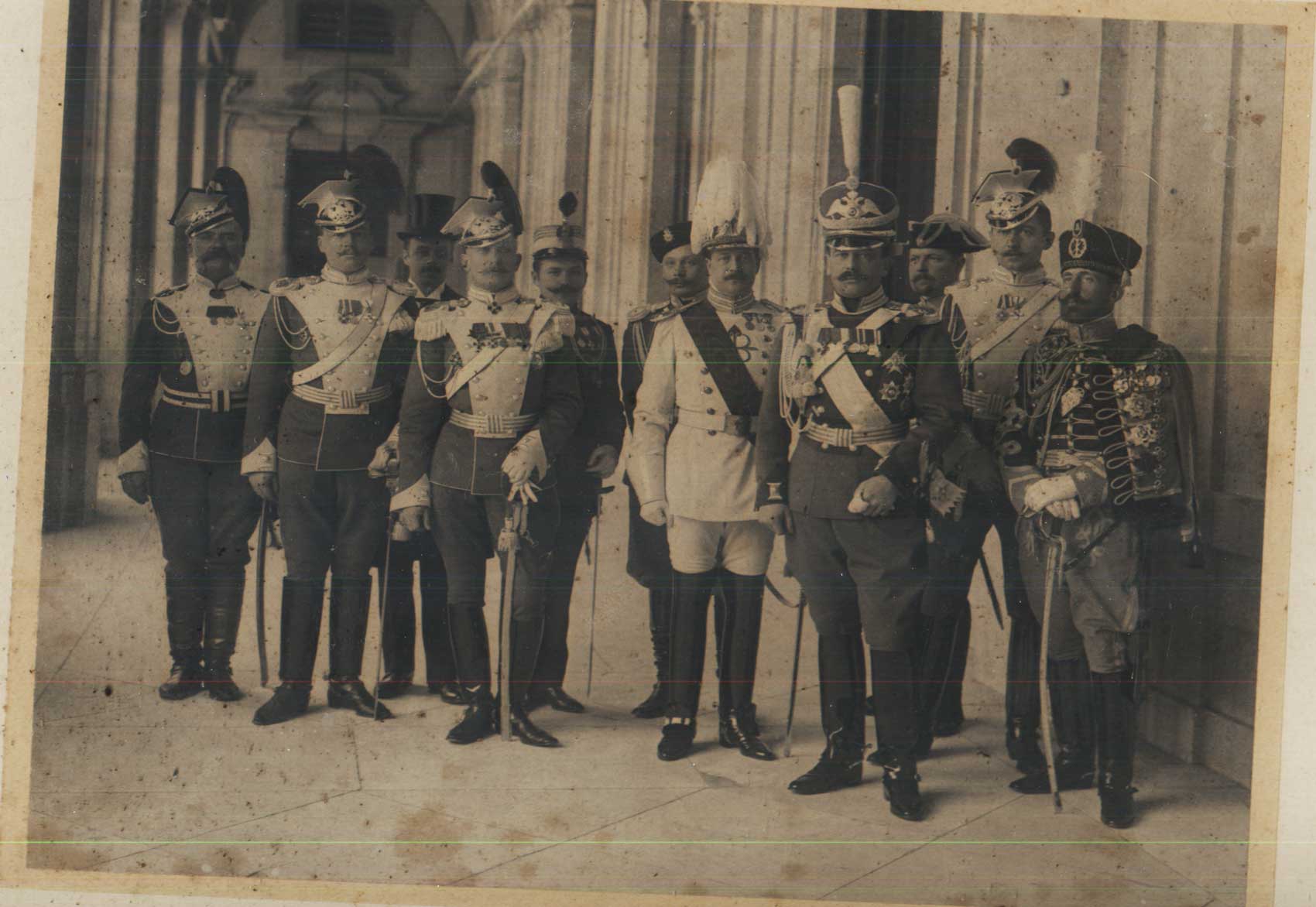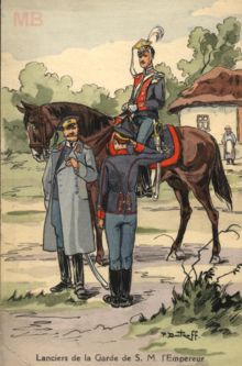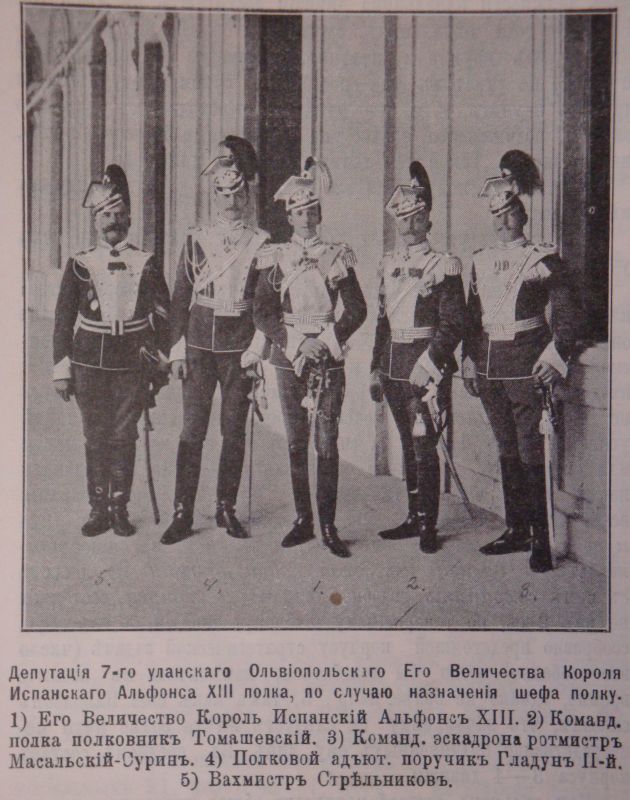 wariag: Rok 1908. Król Hiszpanii Alfons XIII w otoczeniu oficerów 7 pułku ułanów olwiopolskich z Hrubieszowa. Był patronem olwiopolców. |