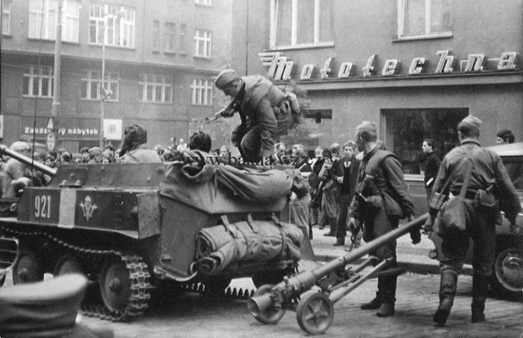 Praha 1968. Ruskie diesantcziki,ASU-57 i emblemat formacji. Fotka rzadka #retrofotorus