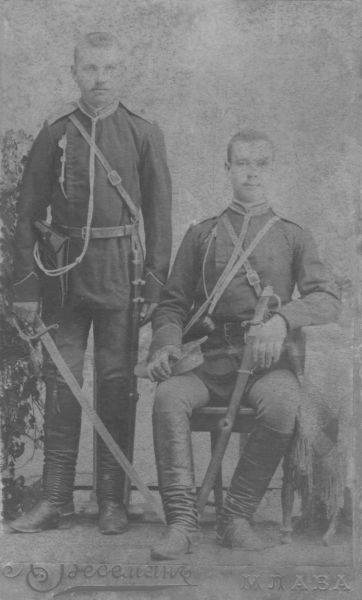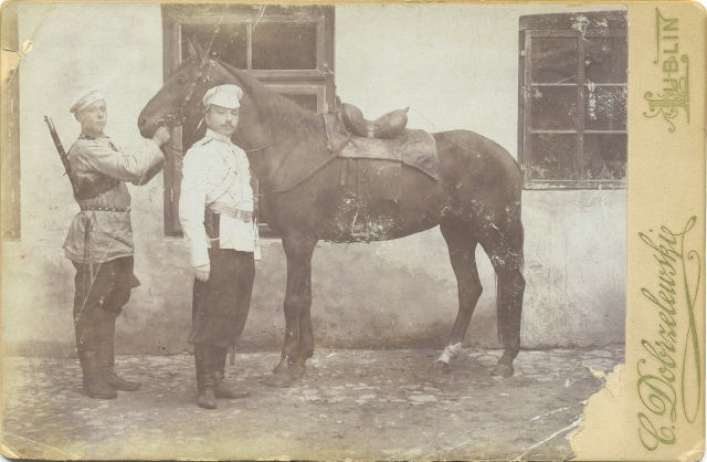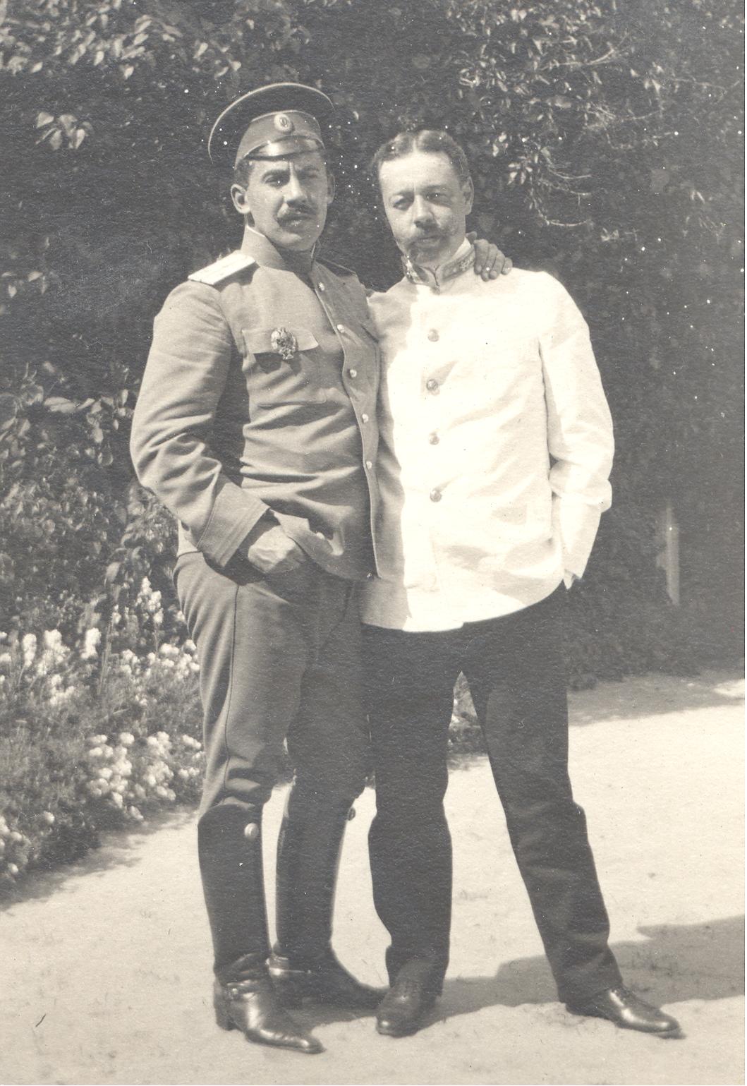Warszawa. Z lewej Pietr Durnowo, oficer grodnieńskiego pułku huzarów. Eksponuje odznakę absolwencką Aleksandrowskiego Liceum w Carskim Siole #retrofotorus