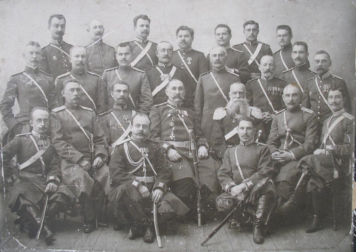 Wieluń 1908. Oficerowie i urzędnicy 5 pułku kozaków dońskich im. atamana Własowa #retrofotorus