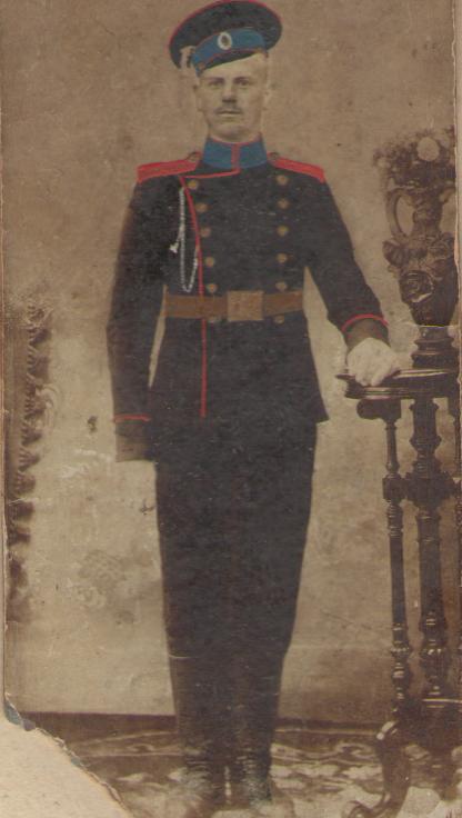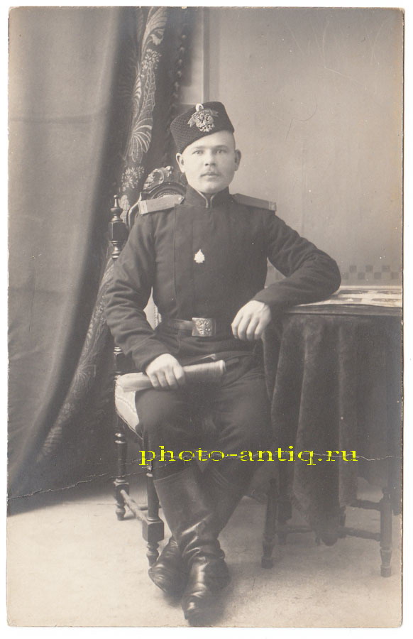 Łódź. Sołdat 1 pułku strzelców. To dembel ponieważ pułk ten nie nosił czapek z wstęgami "Za odwagę", może więc ta czapka to atelierowy rekwizyt? #retrofotorus