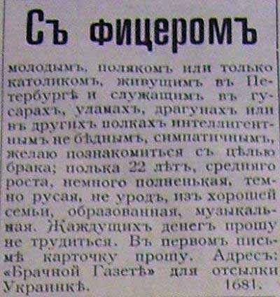Wrzesień 1908. 22-letnia Polka pozna "oficera-katolika służącego w Petersburgu w huzarach, dragonach, ułanach lub innych pułkach"... #retrofotorus