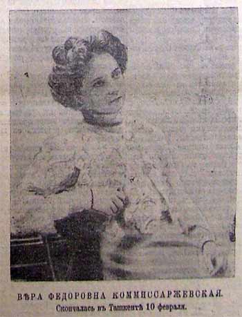 Taszkient 23 II 1910. Znakomita aktorka (zwłaszcza w sztukach Czechowa) Wiera Kommissarżewskaja zmarła na ospę tuż po spektaklu. Miała 46 lat #retrofotorus
