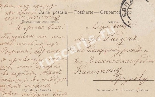 Eupatoria-poligon Raducz. Korespondencja przyjaciółek. Adresatka Ola to zapewne żona kapitana Graznowa z 37 jekaterinburskiego pp z Łodzi #retrofotorus