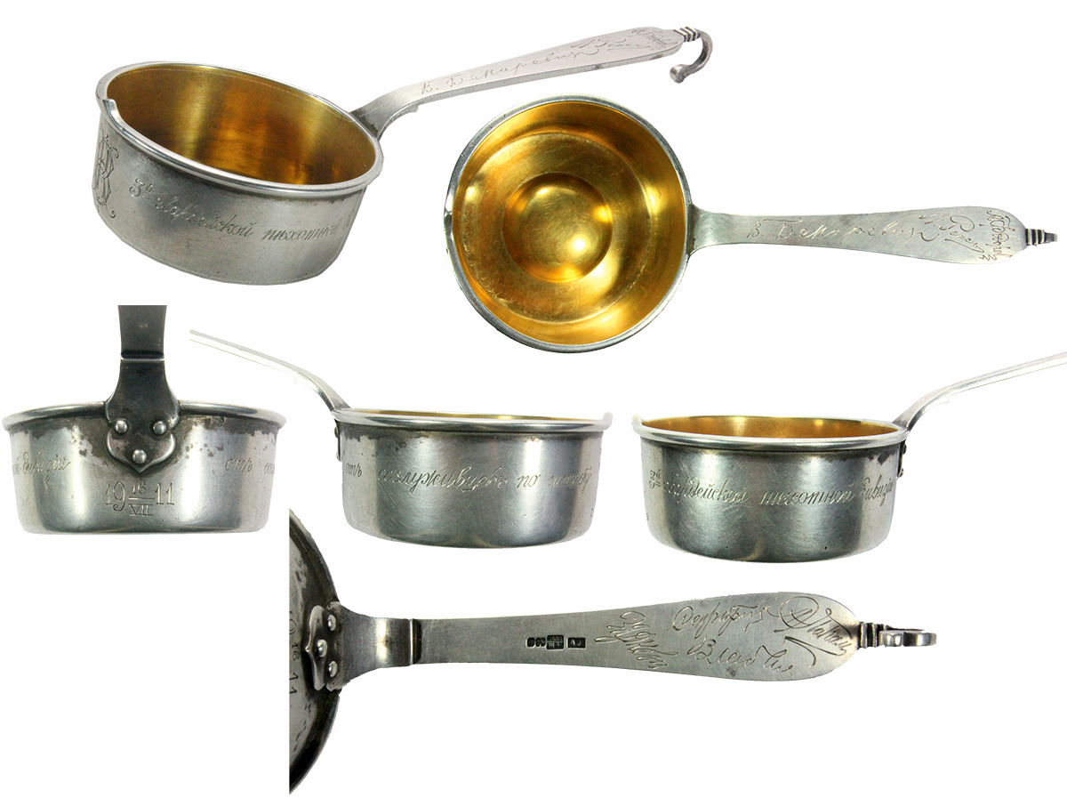 Warszawa 16 VII 1911. Srebna i pozłacana tzw "bratina" jako dar siedmiu kolegów służących w sztabie 3 DP gwardii dla towarzysza broni (a raczej pióra) [kleynod.at.ua] #retrofotorus