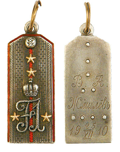 Żeton sztabskapitana Wiktora Afanasjewicza Żmiliowa z keksholmskiego pp gwardii (garnizon Warszawa). Po 1917 przebywał na emigracji w Bułgarii. [kleynod.at.ua] #retrofotorus