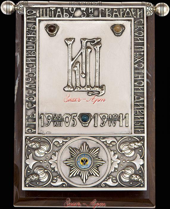 Warszawa 1911. Dar sztabu 3 DP gwardii dla kapitana Iwana Jefremowicza Szczerbaka - starszego adiutanta sztabu dywizyjnego [www.znak-art.ru] #retrofotorus