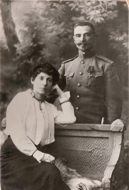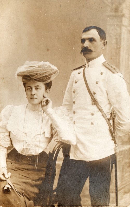 Gostynin 1909. Kapitan 3 pułku strzelców Aleksiej Stiepanowicz Daniliewskij z żoną Wierą Wasiliewną. Szlachcic z rodziny oficerskiej, absolwent seminarium nauczycielskiego [ria1914.info] #retrofotorus