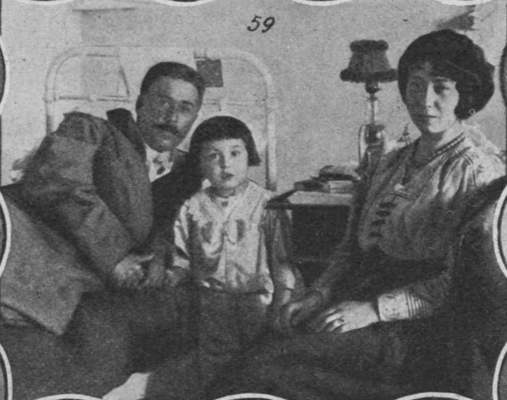 Kapitan 3 pułku strzelców Wiaczesław Wasiliewicz Parakin (pochodził z gub. symbirskiej) z żoną i synkiem. Foto z lazaretu gdzie przebywał po zranieniu 2 IX 1914 [ria1914.info] #retrofotorus