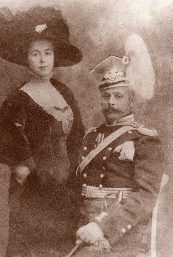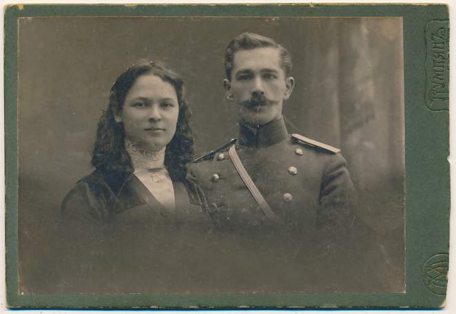 wariag: Kornet 15 tatarskiego pułku ułanów Konstantin Tichmieniew z małżonką. Był szlachcicem z gub. chersońskiej, d-cą dywizyjnego konnego oddziału pulemiotów. Od 1909 służył w Rypinie, od 1911 w Płocku [ria1914.info] #retrofotorus |
