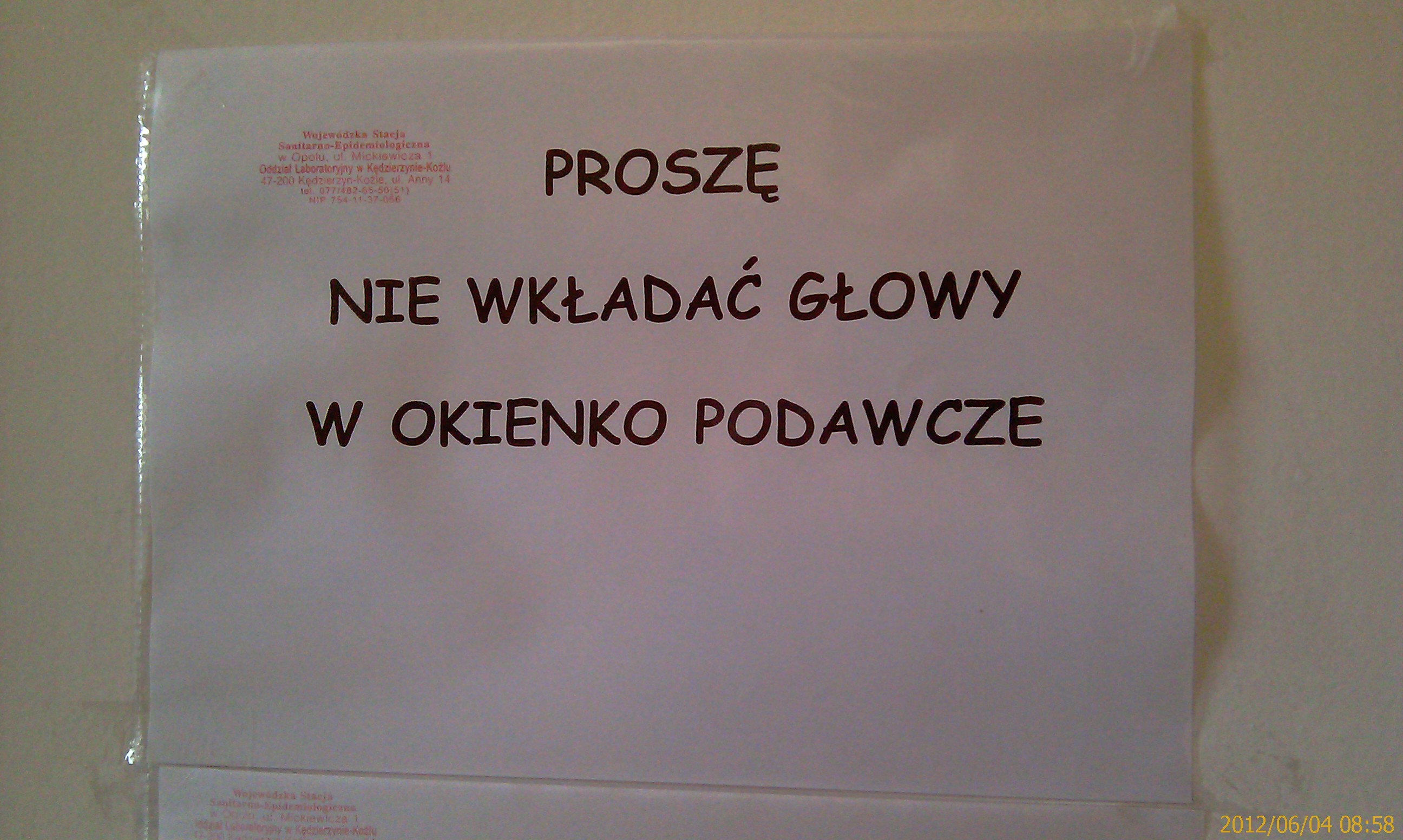 Informacja w laboratorium miejscowego Sanepidu.