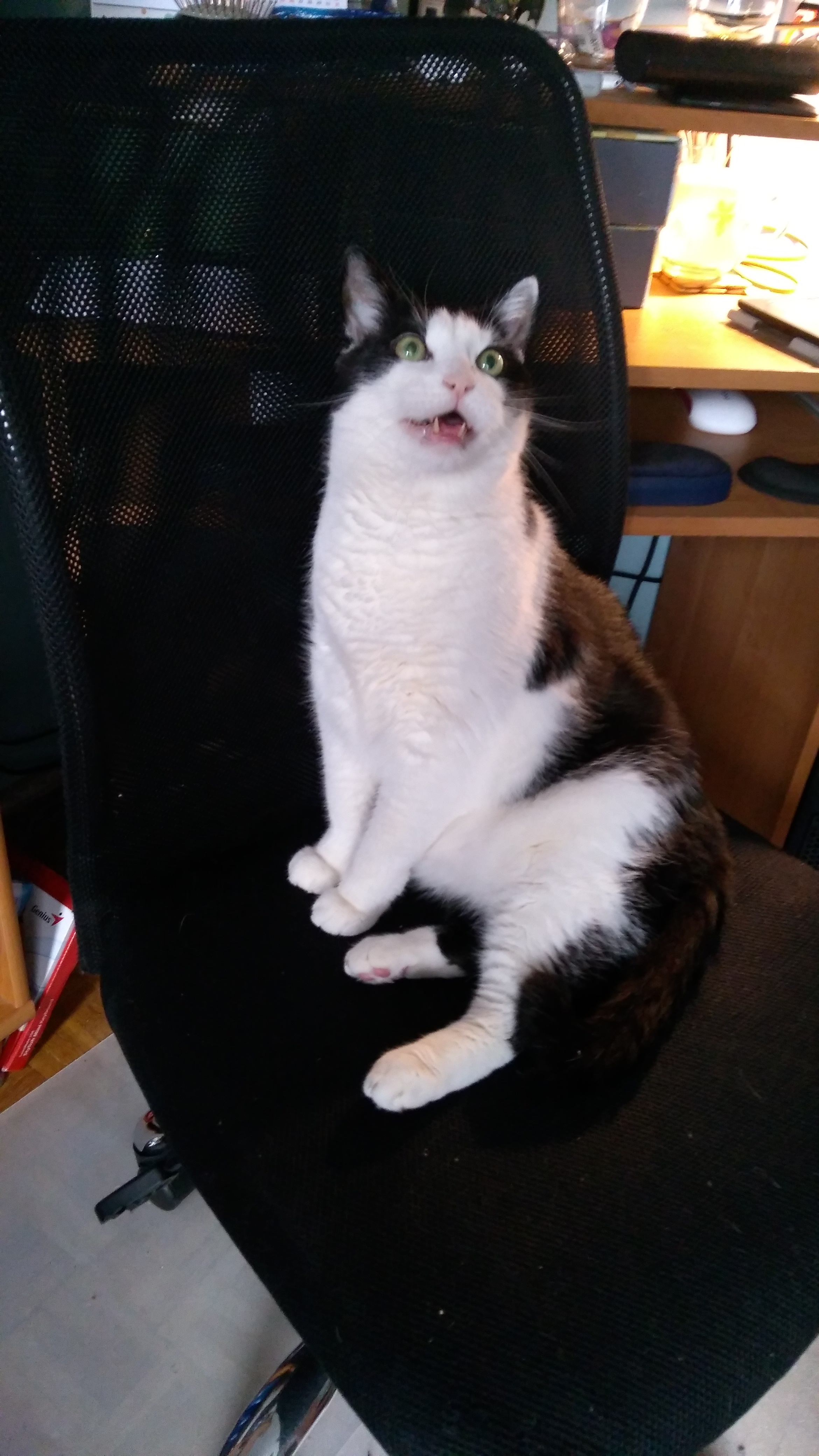 Zachciało mi się herbaty, co wymagało obudzenia kota Beżota i wyrzucenia go z umywalki. Jestem wredny.
