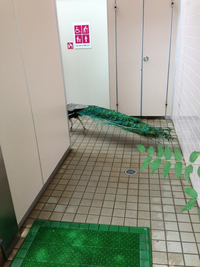 Japoński brak kultury, czyli paw uwieczniony w publicznej toalecie. :D