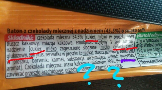 xxxo: przecież to jest.... brak mi słów. w batoniku 41g masz 10 g węglowodanów w tym 26 g cukru!!!!!!! 5 łyżeczek cukru!!!!! |