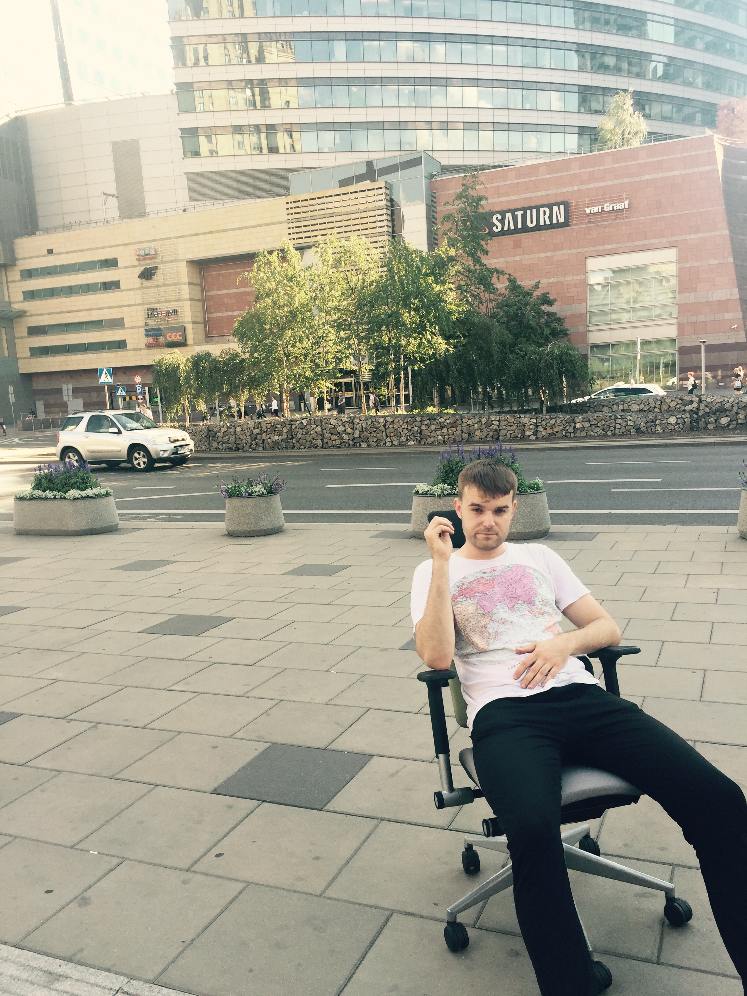 Przeprowadzamy sie w poniedziałek do nowego biura i pracownicy mogli kupić swoje krzesło za 50pln. Wyczekałem do ostatniej chwili i capnąłem fotel partnera. Sziptar go prztachał na plecach przez poł Warszawy.